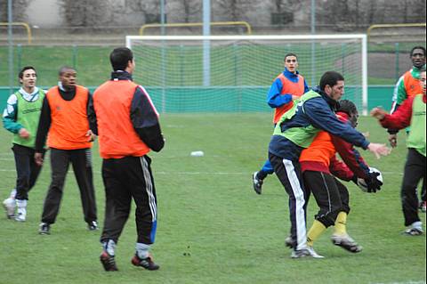 DERNIER COUP DE REIN. Dans 48 heures, les équipes du Red Star disputeront leurs dernières rencontres de l’année 2004. La plupart des joueurs seront en « vacances ». Pour la DH, deux entraînements sont programmés. DES BLESSES …. La victoire devant Brétigny a laissé des traces. Kaba Diomande est forfait. Philippe Cuervo et Vincent Fourneuf sont incertains. Ahmed Hamdani et Aboubacar Tandia ne se ressentent plus de leurs « bobos ». Alhaji Baldé, Franck Gueï sont toujours blessés. Grégori Sinobad qui n’avait pas disputé le match de DHR a repris l’entraînement mercredi. Enfin, terminons par une bonne nouvelle, Salifou Essomba, le gardien blessé avant le début du championnat reprend petit à petit l’entraînement. |