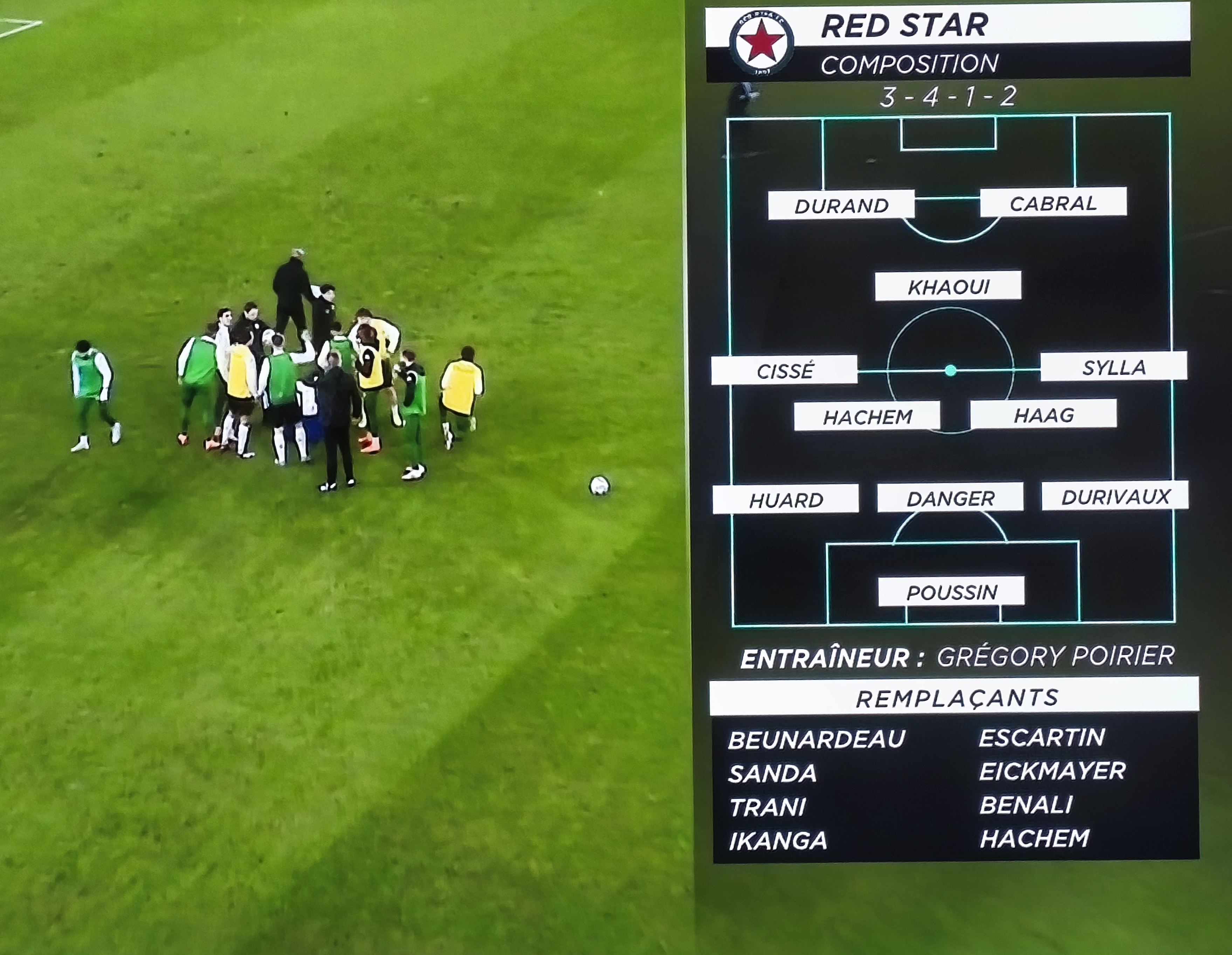 « Le match a été arrêté à la 56e minute. Un fumigène en provenance de la tribune a été envoyé directement sur un joueur du Red Star FC. À la suite de ça, on a décidé de rentrer. Donc le règlement en la matière est très clair : un joueur qui reçoit un projectile et qui n’est pas dans la possibilité de reprendre le match, la décision finale en tout cas qui sera prise et qui est prise, c’est match arrêté. Donc le match ne reprendra pas. »