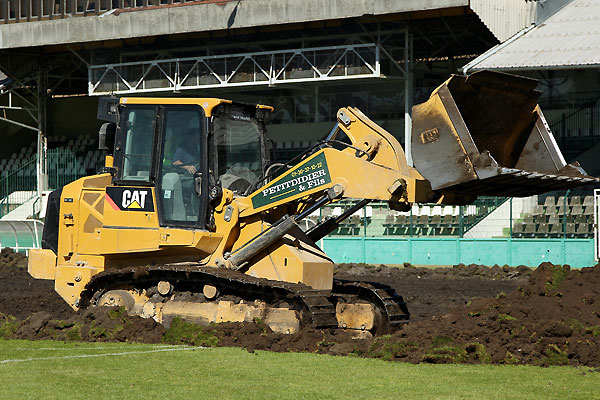 alt="Jeudi matin, presque la dernière tonte de la pelouse de Bauer © GT Valck"> Stade Bauer and its grass pitch, on Thursday morning © GT Valck