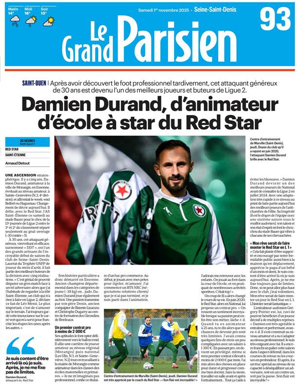 Jusqu’où ira le Red Star cette saison ? Sensation de ce premier tiers de la Ligue 2, le club de la Seine-Saint-Denis a frappé un grand coup ce samedi soir lors du choc de la 13e journée en venant à bout de l’AS Saint-Étienne (2-1), grand favori pour la (re)montée en Ligue 1. Quatre jours après le lourd revers (3-0) à Dunkerque (qui mettait fin à une série de 5 succès d’affilée à l’extérieur), l’Étoile Rouge a fait preuve de talent mais aussi de résilience à certains moments pour s’offrir son 3e succès de la saison à la maison.