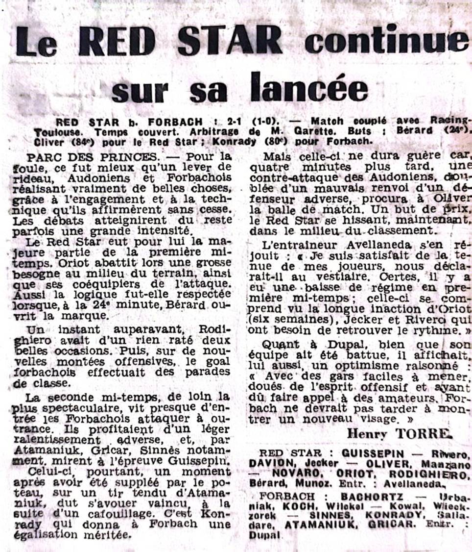 . Le 20 octobre 1963, le Red Star l’emporte au Parc des Princes, en D 2, en lever de rideau de Racing – Toulouse.
