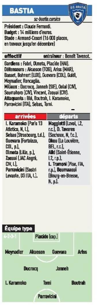 BASTIA : Valencony, Bernard, Leclerc, Maroselli, Burnier, Santini, Faye, Camadini, Castro, Bourabba (El Oualli 59ème). Entr. Lavigne