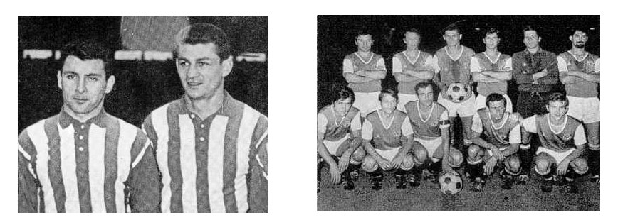 A gauche :Jean Mouthon et Carlos Monnin. A droite, le Red Star 1969-1970, debout : Mouthon, Bacquet, Monnin, J. Ahache, Laudu, Baton. Accroupis : Vergnes, Herbet, Farias (cap.), Milosevic, Gomez