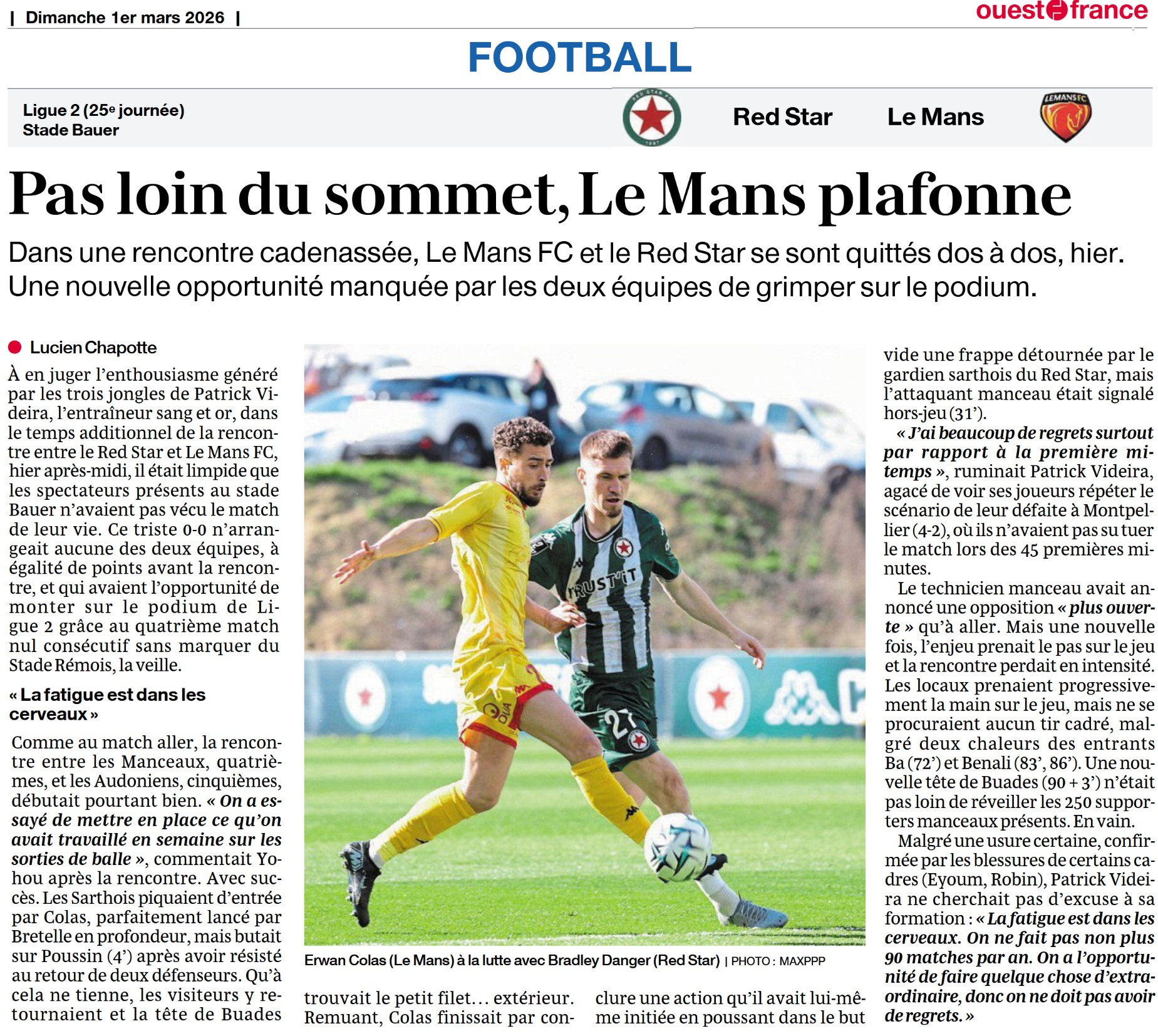 DANS LA PRESSE, RED STAR – LE MANS Dans Ouest France