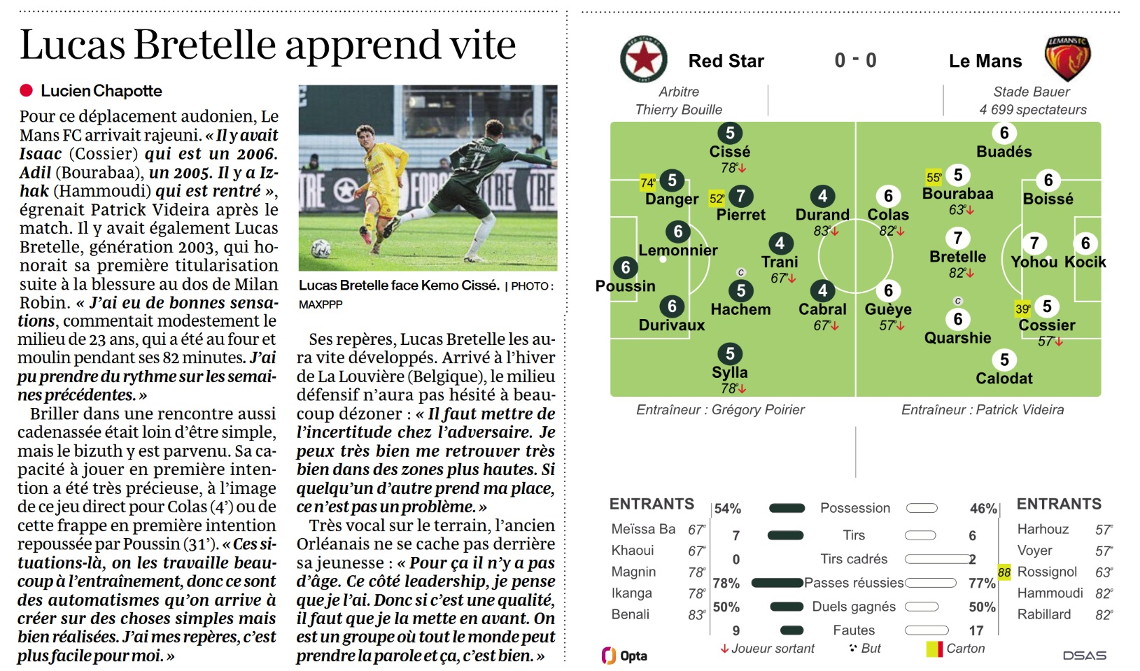 Avertissements. Red Star : Pierret (52e), Danger (74e) ; Le Mans : Cossier (39e), Bourabaa (55e).