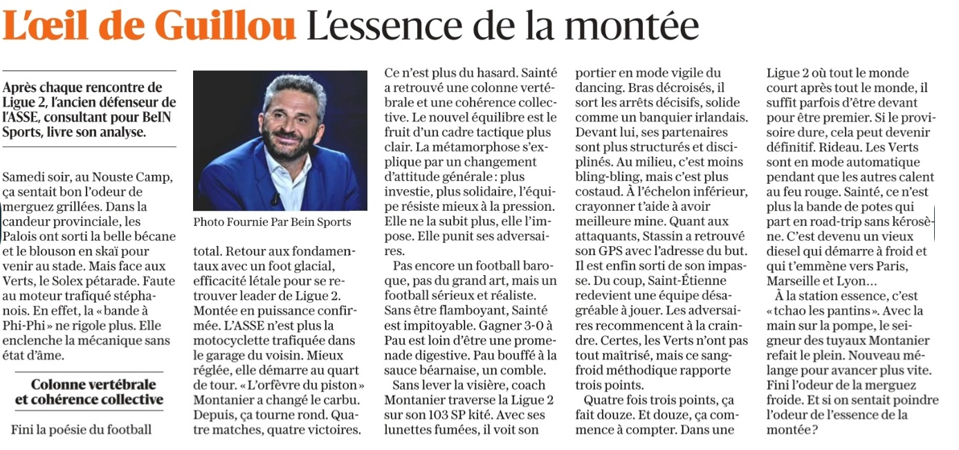 Spécialiste du football allemand sur Bein Sports, Patrick Guillou, joueur des deux clubs analysait le match de Saint-Etienne à Pau, de samedi dernier